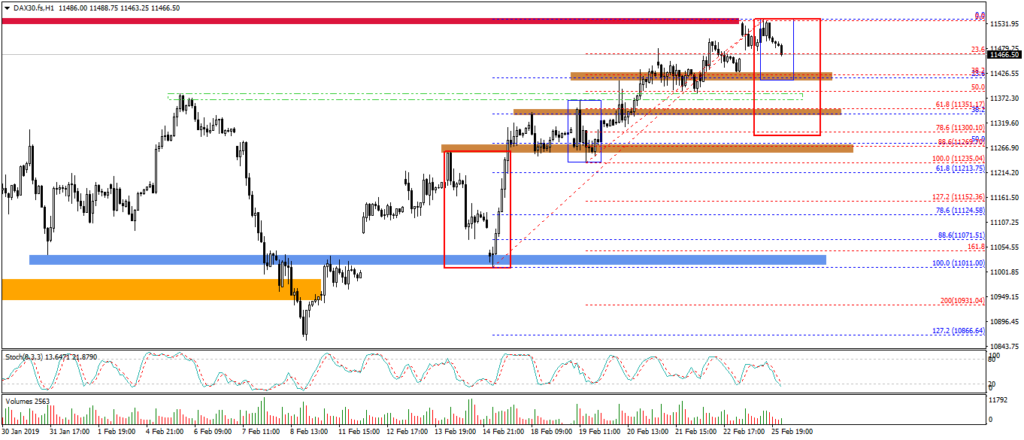 Na DAX doszliśmy do strefy i tym samym zrealizowany został podstawowy zasięg odbicia wyznaczony tu na blogu już jakieś 3 tygodnie wcześniej. Malutki Pin bar jaki powstał po wczorajszej sesji jest dla mnie osobiście zbyt słabym sygnałem aby brać już mocno pod uwagę powrót do spadków średnioterminowych czy chociażby wejścia w większą korektę do okoli 10900. Jest strefa , jest linia trendu jest i też jakaś reakcja. Jeśli cena zdoła spaść i wybić w dół 11370 a następnie 11260 to będzie to już miało swoją niedźwiedzią wagę ale dopóki to nie nastąpi to trzymam się trendu wzrostowego w wymiarze dziennym swingowym i tyle.