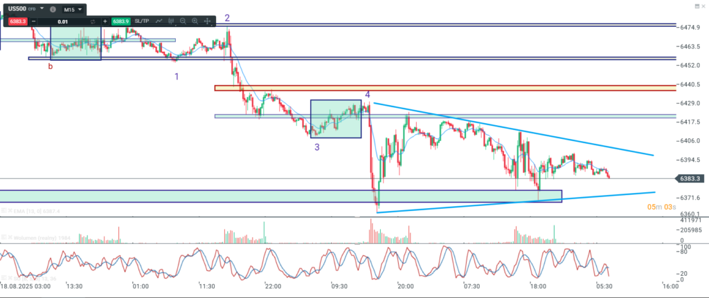 Na wykresie intra kontraktów na S&P mamy obecnie konsolidację w formie trójkąta , który statystycznie powinien doprowadzić do wybicia dołem i ustanowienia nowego dołka. Zatem albo moja interpretacja fal w swingu wyższego rzędu jest błędna albo będziemy mieli 5 w formie klina co dawałoby jeszcze kilka nudnych sesji.