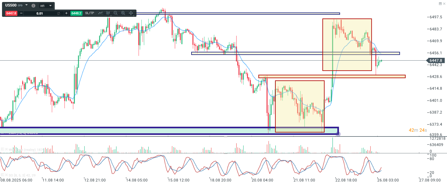 Wykres intra kontraktów na DAX daje nieco większą niż do tej pory możliwość zakończenia tej nudy jaka tu panuje od dobrych kilku sesji. Jak widać cena osiągnęła zakres OB a dynamiczne dojście do tego zakresu z dolnym wyraźnym cieniem to idealna świeca na markowanie podaży. Oczywiście nie oznacza to, że nawet w przypadku gdyby tutaj w tym rejonie miał nastąpić koniec spadku, cena nie zejdzie jeszcze raz na nowy nieco niższy dołek. W przypadku odbicia do najbliższej strefy oporu i zmiany kierunku na spadkowy, sytuacja nabierze rumieńców bo wówczas układ utworzony w spadku da szanse na całkowite zanegowanie OB. Takie podejście pod strefę oporu wydaje mi się najbardziej prawdopodobne i wówczas jak najbardziej można grać S z uwagą na to co napisałem czyli na zejście „tylko” do okolic ostatniego dołka.