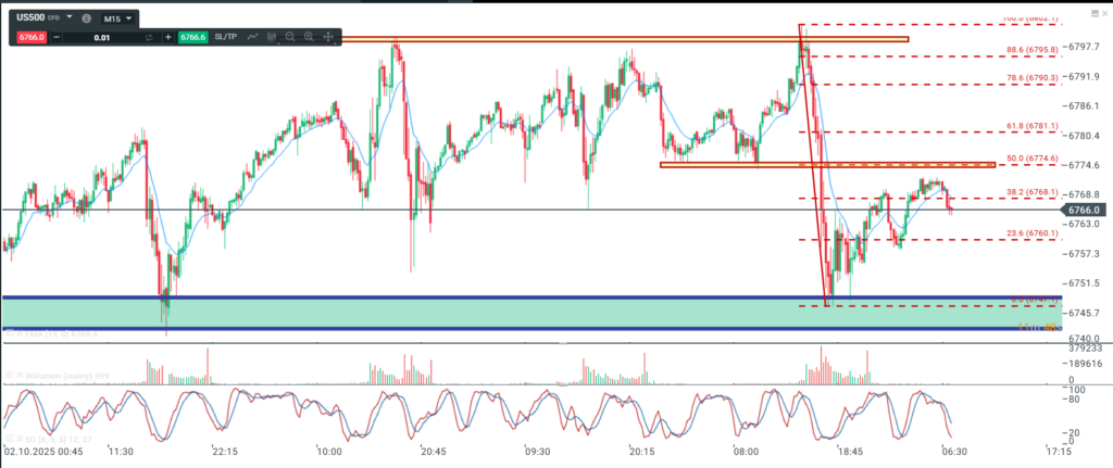 Na wykresie dziennym indeksu S&P mamy małą spadkową świecę , która nie wnosi nic nowego do bieżącej sytuacji.