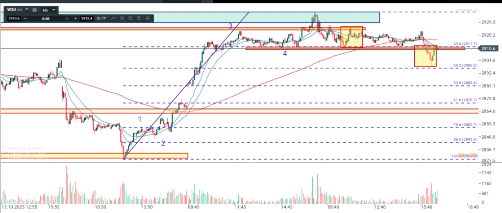 Klucz na sesje obecnie poziom 2865, natomiast świeca W1 ustawia zakończenie sesji pod 2885, a misiek pije w weekend gdy close tygodnia pod 2820.