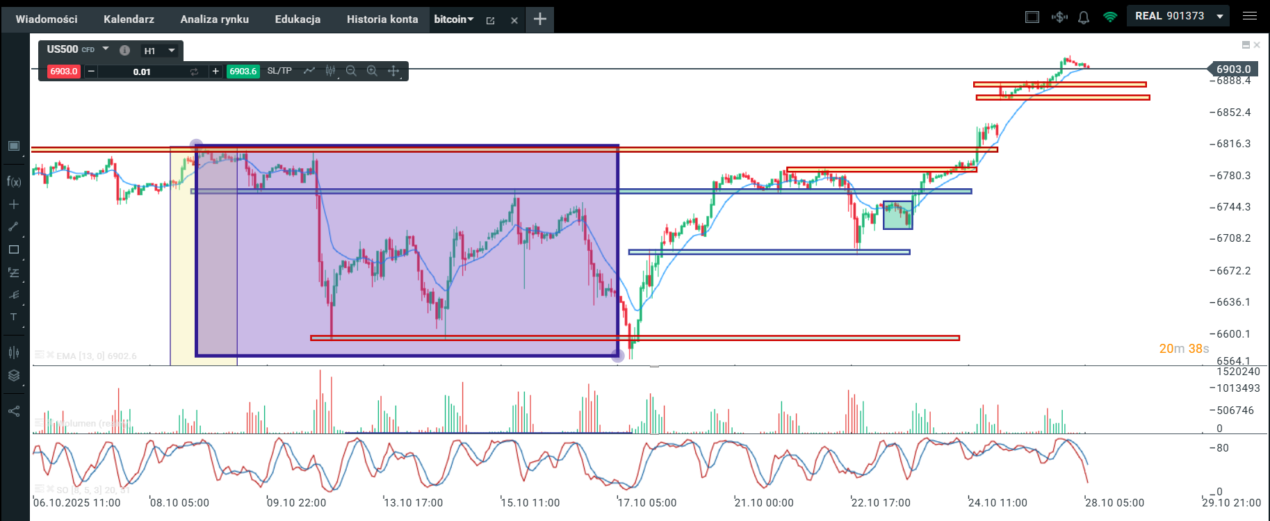 Handel 3001 godzina 8,50, spodziewane zachowanie – pokonanie 2293 dynamicznie na podane TP1.