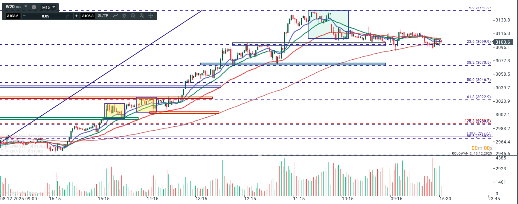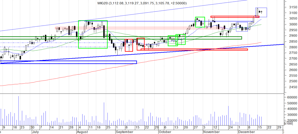 Cele dla S wskaźnika to 3121, 3109, 3092. Falowy dla fali 3 – 3070.