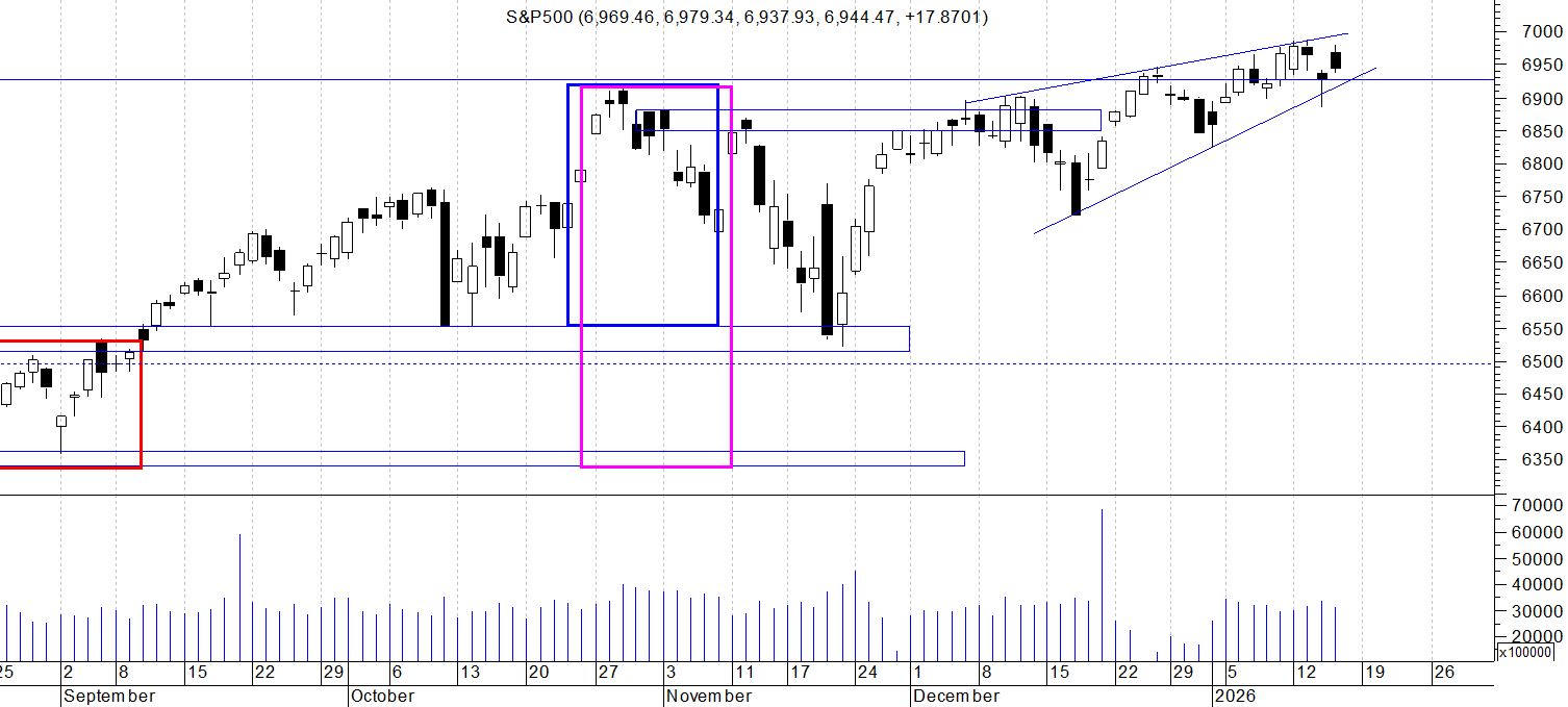 Dwie ostatnie sesje nie zmieniły sytuacji na wykresie dziennym indeksu S&P zatem pozwolę sobie na pominięcie analizy tego wykresu do czasu weeknedowej.