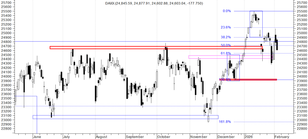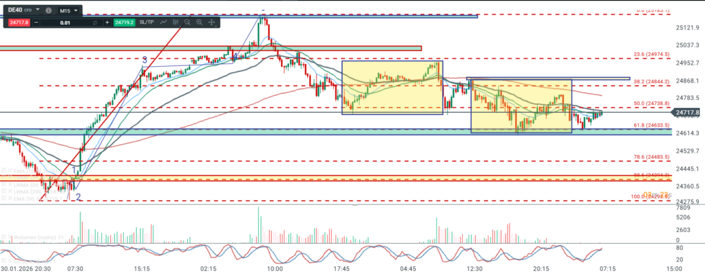Spadkowa świeca na wykresie dziennym indeksu DAX wpisuje się , jak dla mnie , w korektę przed kolejnym swingiem wzrostowym. Na ten moment tak to odczytuję i równocześnie znajduje potwierdzenie, również na ten moment, w wykresie intra.