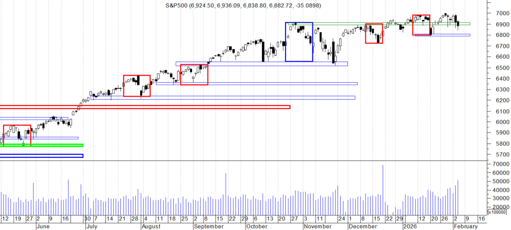 Pierwsze bardzo poważne ostrzeżenie, S&P naruszył dołek co wskazuje że mieliśmy klin końcowy w fali 5 od dołka z kwietnia 2025. U nas mamy tez pierwszy poważny problem dostrzegalny na intra.