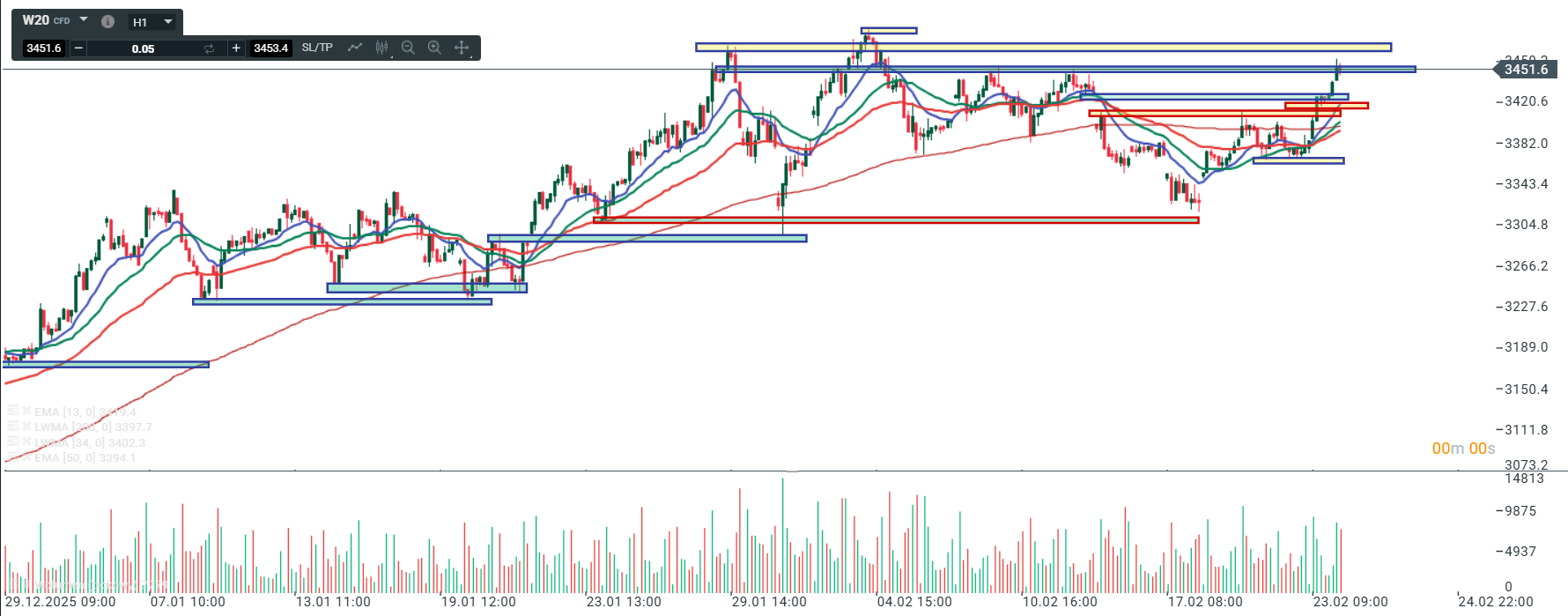 Ważna będzie świeca 4h o 16:00. Najlepiej aby ponad 3415 się zamknęła.